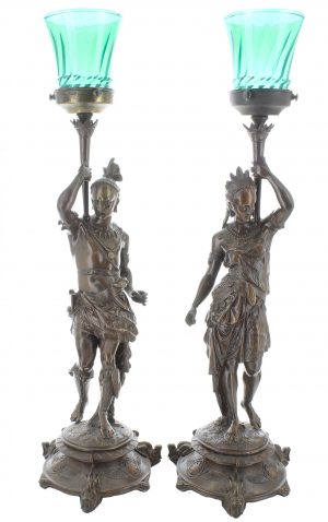 American Indian archer on horseback hunting western buffalo bison. Signed Gregory S. Allen (listed artist/davenports), along with the Armor Bronze Factory "SHIELD" logo. Nice, aged patina. Early, fine quality works of American Armor Bronze Co.