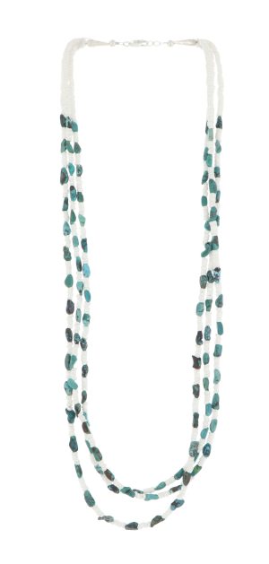 At Cameron Trading Post, shop authentic liquid silver necklaces, Navajo necklaces, Santo Domingo necklaces, and more. These authentic necklaces are designed and meticulously crafted by skilled Native American artists. Please browse our online selection of necklaces from the Navajo, Zuni, and other tribes. We have necklaces that will suit any style or budget.