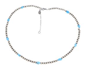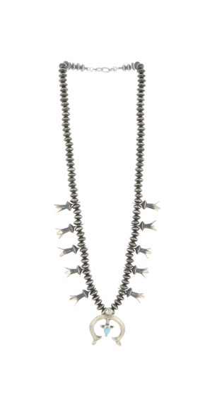 Turquoise is Native to Southwestern jewelry and has been used in Native American Indian jewelry for centuries. Beads and carvings shaped and drilled from turquoise as well as shells and other semi-precious stones available through trade routes throughout the Americas are a strong tradition that continues today, especially among the Pueblos.