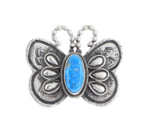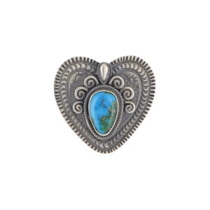 Turquoise is Native to Southwestern jewelry and has been used in Native American Indian jewelry for centuries. Beads and carvings shaped and drilled from turquoise as well as shells and other semi-precious stones available through trade routes throughout the Americas are a strong tradition that continues today, especially among the Pueblos.