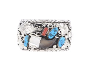 If you’re shopping for authentic Native American bracelets and other jewelry online, look no further than the historic Cameron Trading Post! We have been selling genuine turquoise bracelets and more for more than a century since we first opened our doors in 1916. Our Native American bracelets are meticulously handcrafted by Navajo, Zuni, Hopi, and Santo Domingo artists who are skilled in bracelet, necklace, and earring-making. These beautiful jewelry pieces are designed from materials such as sterling silver, turquoise, coral, shell, and other stones and make the perfect gift for a friend or loved one! Please browse our inventory below of both antique and contemporary bracelets, or contact us with questions about your item.