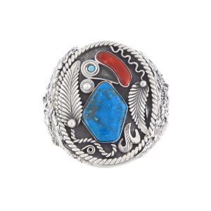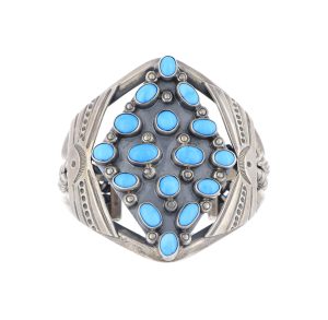 If you’re shopping for authentic Native American bracelets and other jewelry online, look no further than the historic Cameron Trading Post! We have been selling genuine turquoise bracelets and more for more than a century since we first opened our doors in 1916. Our Native American bracelets are meticulously handcrafted by Navajo, Zuni, Hopi, and Santo Domingo artists who are skilled in bracelet, necklace, and earring-making. These beautiful jewelry pieces are designed from materials such as sterling silver, turquoise, coral, shell, and other stones and make the perfect gift for a friend or loved one! Please browse our inventory below of both antique and contemporary bracelets, or contact us with questions about your item.