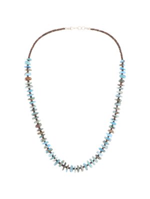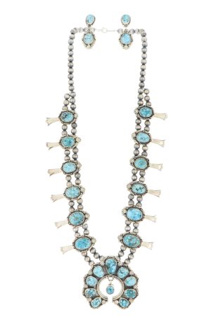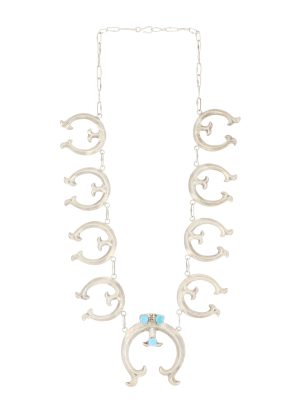 These are beautiful Native American Indian necklaces from the popular and unique Zuni fetish necklaces to the more traditional Navajo squash blossom necklaces along with everything in between! The beautiful contemporary Santo Domingo jewelry includes modern necklace designs along with more traditional Santo Domingo heishi necklaces in turquoise and shell. The Hopi sterling silver overlay is also well represented in our Indian jewelry necklace collection. Navajo and Zuni inlay in turquoise, coral, and shell as well as the modern designs in Indian jewelry in the use of 14k gold and sterling silver. You will find that we offer many turquoise necklaces that are handcrafted by Southwestern Native American tribes. If you don’t find the Native American Indian jewelry you are looking for, just let us know. We would be happy to try and find it for you or make a special order for that special turquoise necklace, you have been wanting!