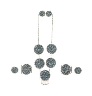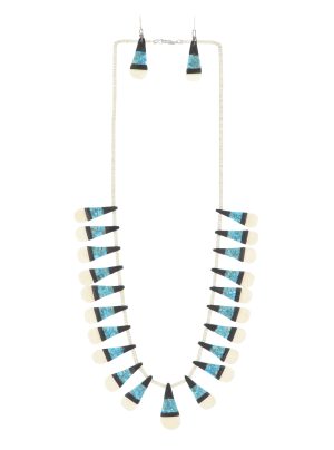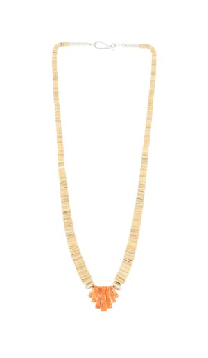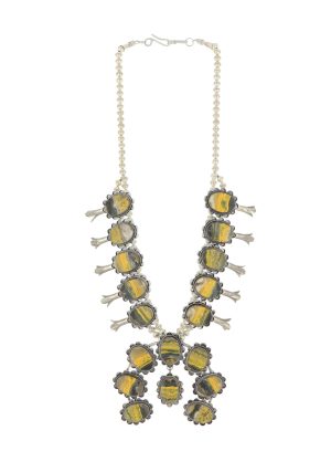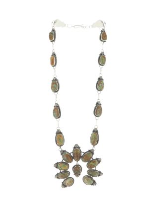 These are beautiful Native American Indian necklaces from the popular and unique Zuni fetish necklaces to the more traditional Navajo squash blossom necklaces along with everything in between! The beautiful contemporary Santo Domingo jewelry includes modern necklace designs along with more traditional Santo Domingo heishi necklaces in turquoise and shell. The Hopi sterling silver overlay is also well represented in our Indian jewelry necklace collection. Navajo and Zuni inlay in turquoise, coral, and shell as well as the modern designs in Indian jewelry in the use of 14k gold and sterling silver. You will find that we offer many turquoise necklaces that are handcrafted by Southwestern Native American tribes. If you don’t find the Native American Indian jewelry you are looking for, just let us know. We would be happy to try and find it for you or make a special order for that special turquoise necklace, you have been wanting!