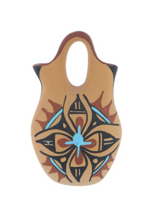 The wedding vase is a poignant symbol in Native American art and culture, particularly among the Navajo. Handcrafted from clay, each vase features two spouts connected by a single handle, representing the union of two lives. The intricate designs and patterns that adorn these vases are deeply symbolic, often invoking blessings for a harmonious and prosperous marriage.