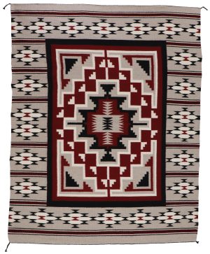 Another one of the most common types of Navajo rugs you’ll find are Two Gray Hills rugs. These rugs are commonly known for their exclusive use of natural wool colors such as browns and greys. They are known for great artistic quality because of the complicated designs and fine hand spinning that these weavers created.