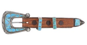 Navajo coral belt buckle with rows of coral stones set in sterling silver by Darlene Begay.