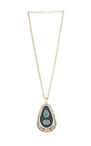 Silver and 14K gold plated stamped bracelet adorned with Bisbee turquoise by Marc Antia (1952-2024). Bracelet has a 1.25" opening.