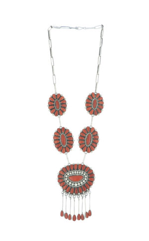 Oxidized sterling silver stamped bracelet with coral and silver bead accents by Darrell Codman.
