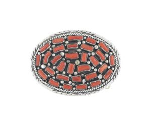 Navajo sterling silver bracelet with silver floral leaf overlay design adorned with coral, turquoise stones and a bear claw in silver bezels by Mike Thomas Jr. Opening of bracelet measures 1 1/2".