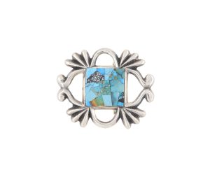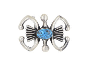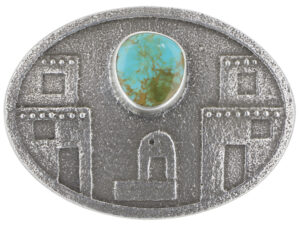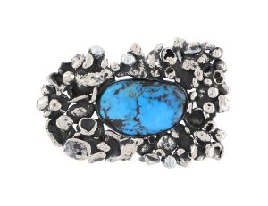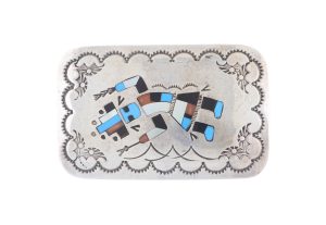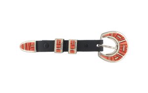 Navajo sterling silver buckle with coral and silver bead cluster design bordered with a twist wire and filed accents by Chris Charley.