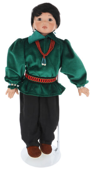 Navajo cloth dolls in traditional dresses and beaded jewelry by Rosanne Joe, Isabel Joe, Betty Yazzie, and Joanne Silversmith.. Please note, this is a handmade item. We will send photos of what we have available at the time of your purchase.