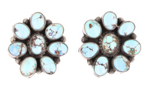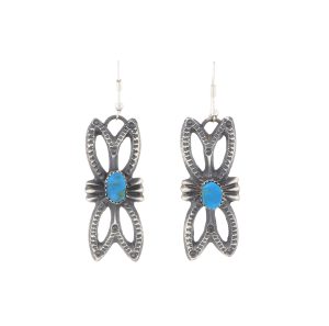 Navajo sterling silver dangle earrings with square cut turquoise by Betta Lee.