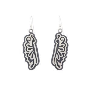 Navajo sterling silver and orange spiny oyster shell cluster dangle earrings adorned with twist wire, silver beads and stamped button accents by Lucinda Yazzie.