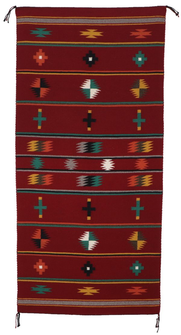 Navajo Germantown rug made with commercially dyed wool by weaver Bessie Yazzie.