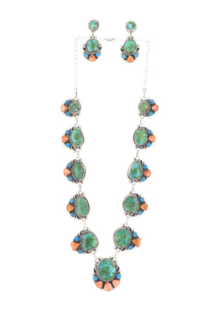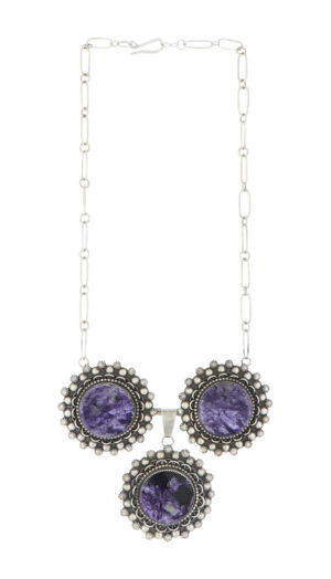 Sterling silver sandcast naja pendant adorned with a single turquoise stone strung with oxidized silver disc beads.