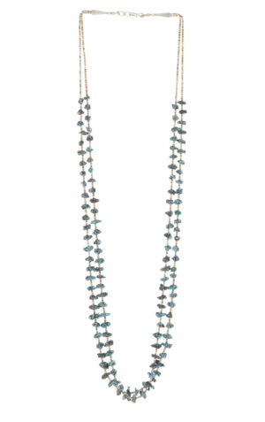 Navajo sterling silver stamped barrel bead necklace with naja pendant adorned with stamped designs and Kingman turquoise. Paired barrel earrings on french hooks measure 1 3/4" x 1".