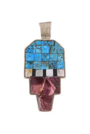 Sterling silver sunface pendant with overlay and stamped detailed features by Will Denetdale.