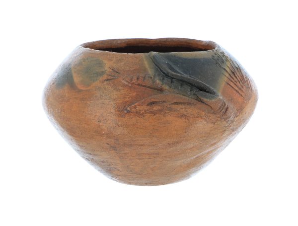 Navajo pottery with a pine pitch glaze finish and raised corn stalk design.