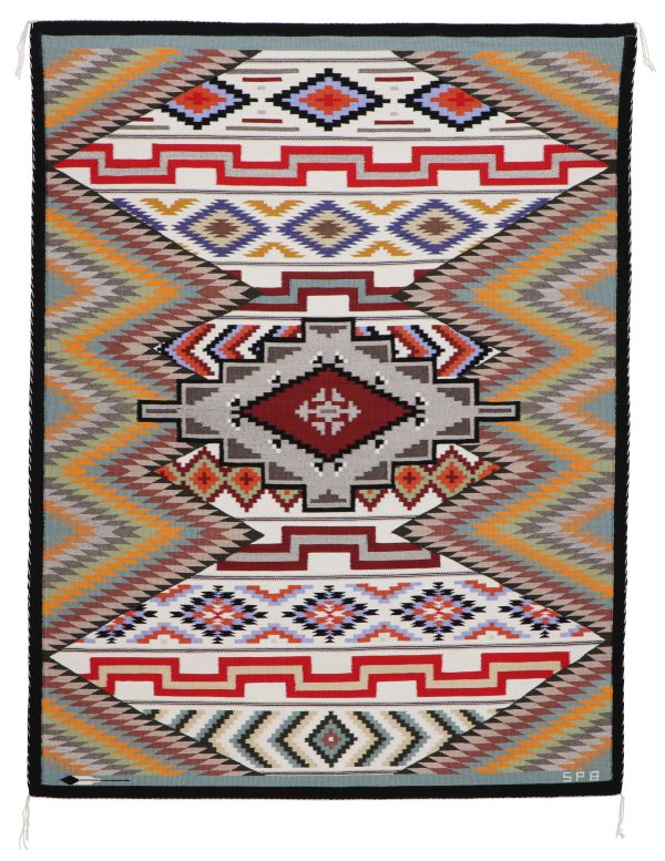 Navajo sampler rug made with commercially dyed wool by weaver Sarah Paul Begay.