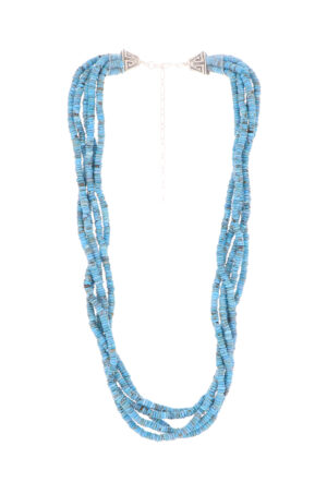 Santo Domingo necklace with jet and white shell disc beads by Robert Tenorio.