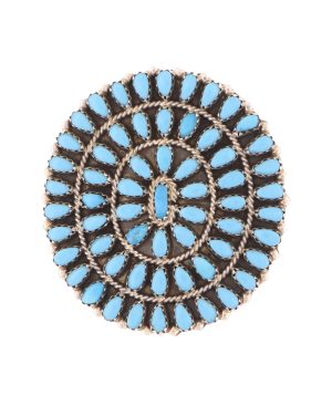 Zuni sterling silver and Sleeping Beauty turquoise needlepoint cluster concho belt on black leather by Evonne Hustito. Each cluster measures 1" x 1.5".
